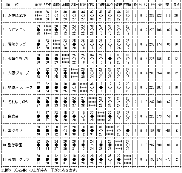 男子Aグループ対戦成績/男子Bグループ対戦成績/女子対戦成績