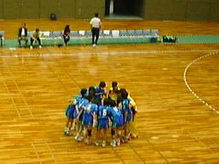 試合前の選手紹介では,ホームの大和銀行が子供用の3号ボールをスタンドに